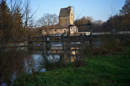 Wehr und Mühle an der Ausstiegstelle sind schon von weitem zu erkennen. Am rechten Ufer des Staubereichs findet ihr eine Möglichkeit anzulanden, noch weit genug vom Gefälle des Wehrs entfernt.